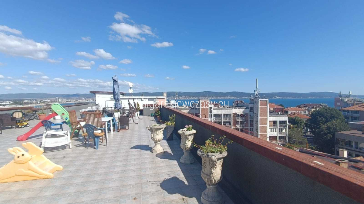 Apartament o powierzchni 85 m2 z jedną sypialnią + letnią werandą i dużym tarasem z aneksem kuchennym, z niesamowitym widokiem, położony na ostatnim piętrze w samym centrum miasta Nesebar.