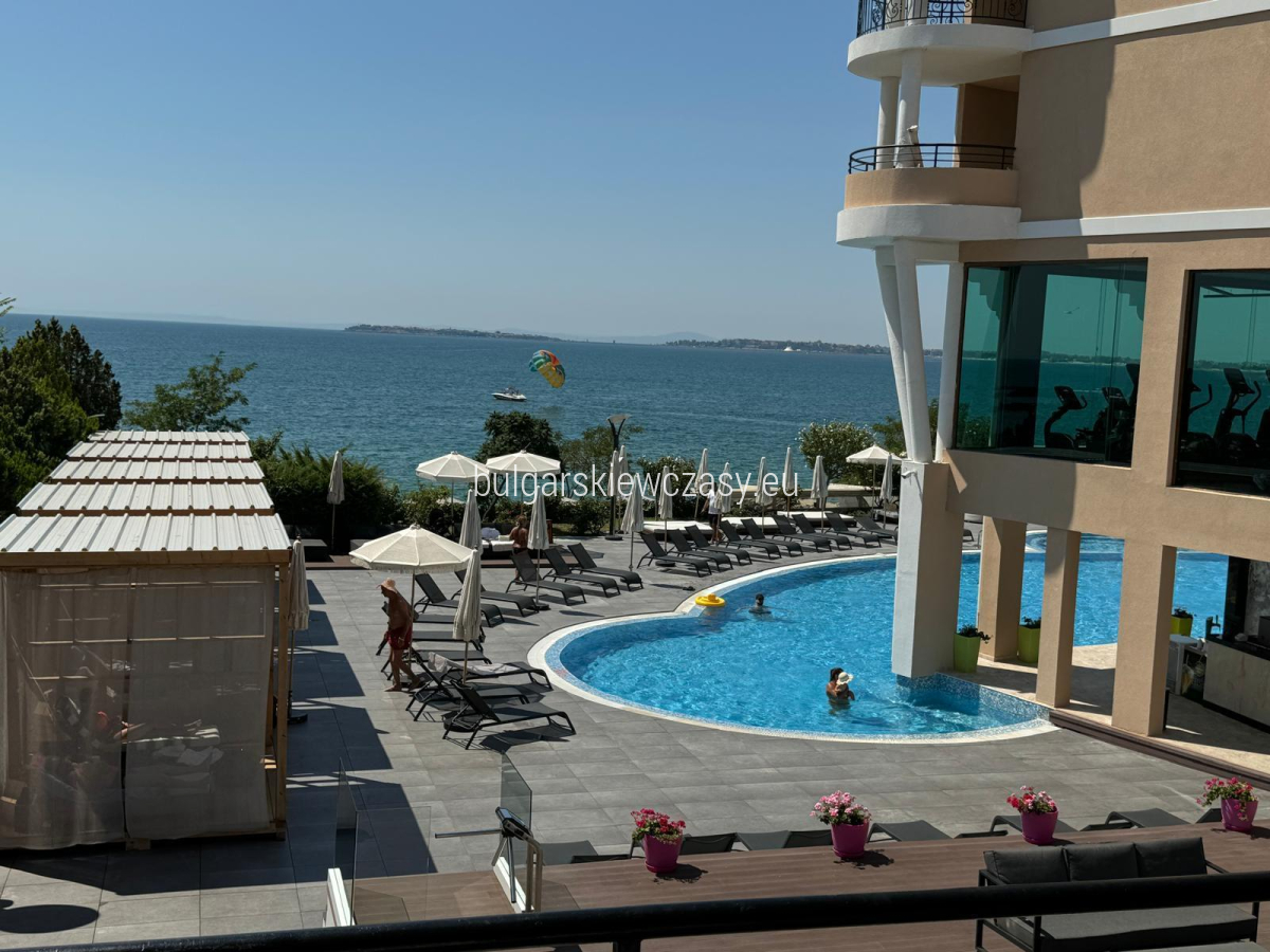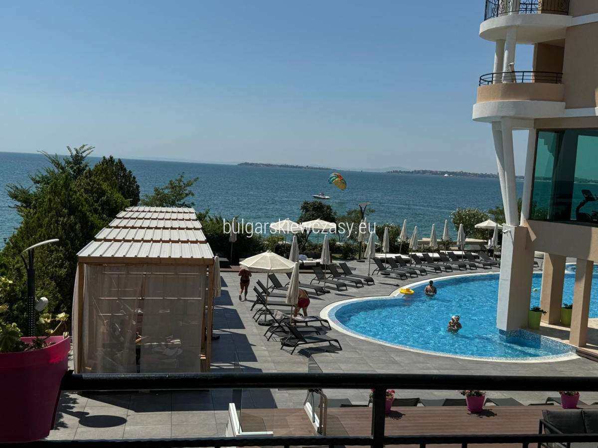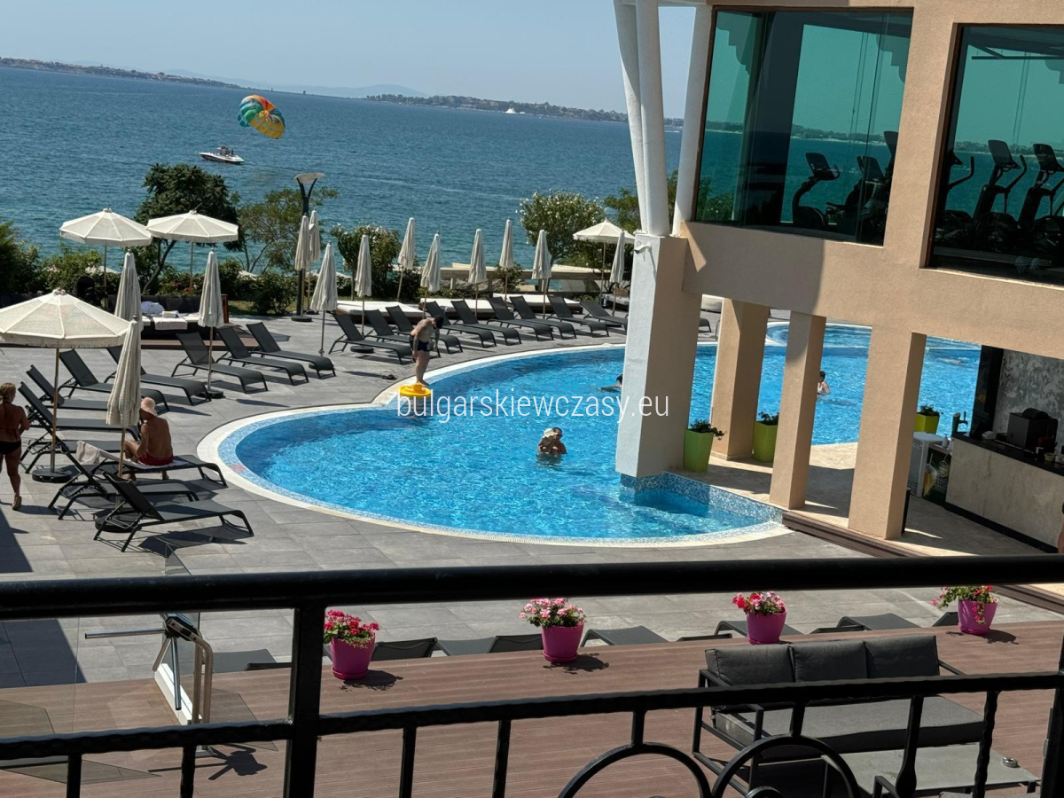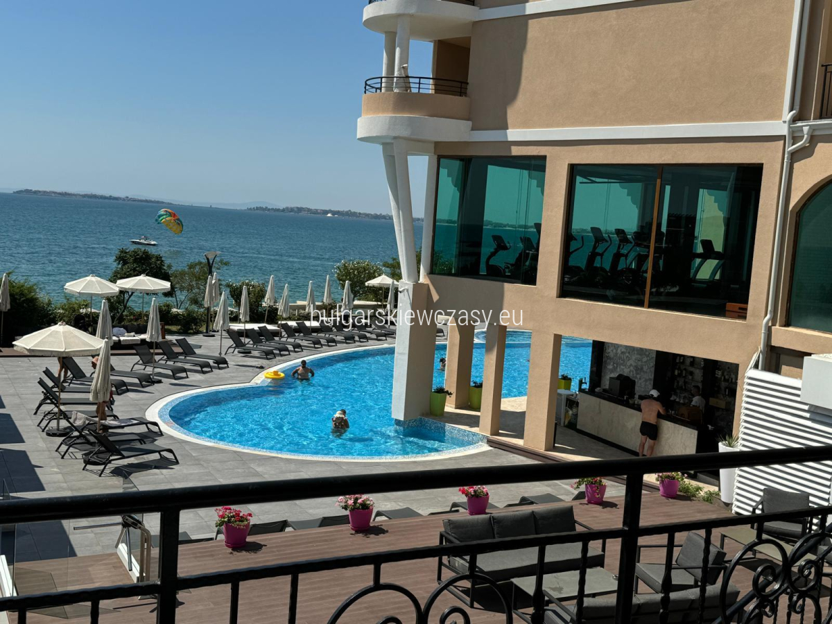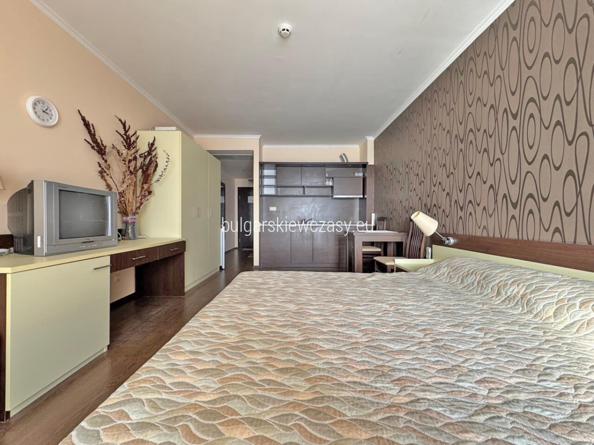 mały korytarz, w pełni wyposażona kuchnia, część sypialna, łazienka z prysznicem i toaletą, taras, z którego roztacza się wspaniała panorama morza. Sprzedaż mieszkania w pełni umeblowanego i wyposażonego w sprzęt AGD. Ekspozycja - południowy wschód. Studio jest jasne, przestronne i w dobrym stanie. Kompleks zlokalizowany jest tuż nad morzem. Bogata infrastruktura hotelu zapewnia wspaniały wypoczynek i relaks. W jej skład wchodzi: bardzo duże i nowoczesne centrum fitness, centrum spa, gabinety masażu, kryty basen, odkryty basen, restauracja, plac zabaw dla dzieci, parking, recepcja, ochrona, monitoring, prywatna plaża, windęa, akt 16, oddzielne liczniki wody i energii elektrycznej całoroczne funkcjonowanie. Niezwykle opłacalna inwestycja, zarówno na całoroczne życie, jak i na wynajem. Firma zarządzająca oferuje pomoc w wynajmie. Odległości do morza - 50 m do lotniska - 30 km do przystani - 900 m