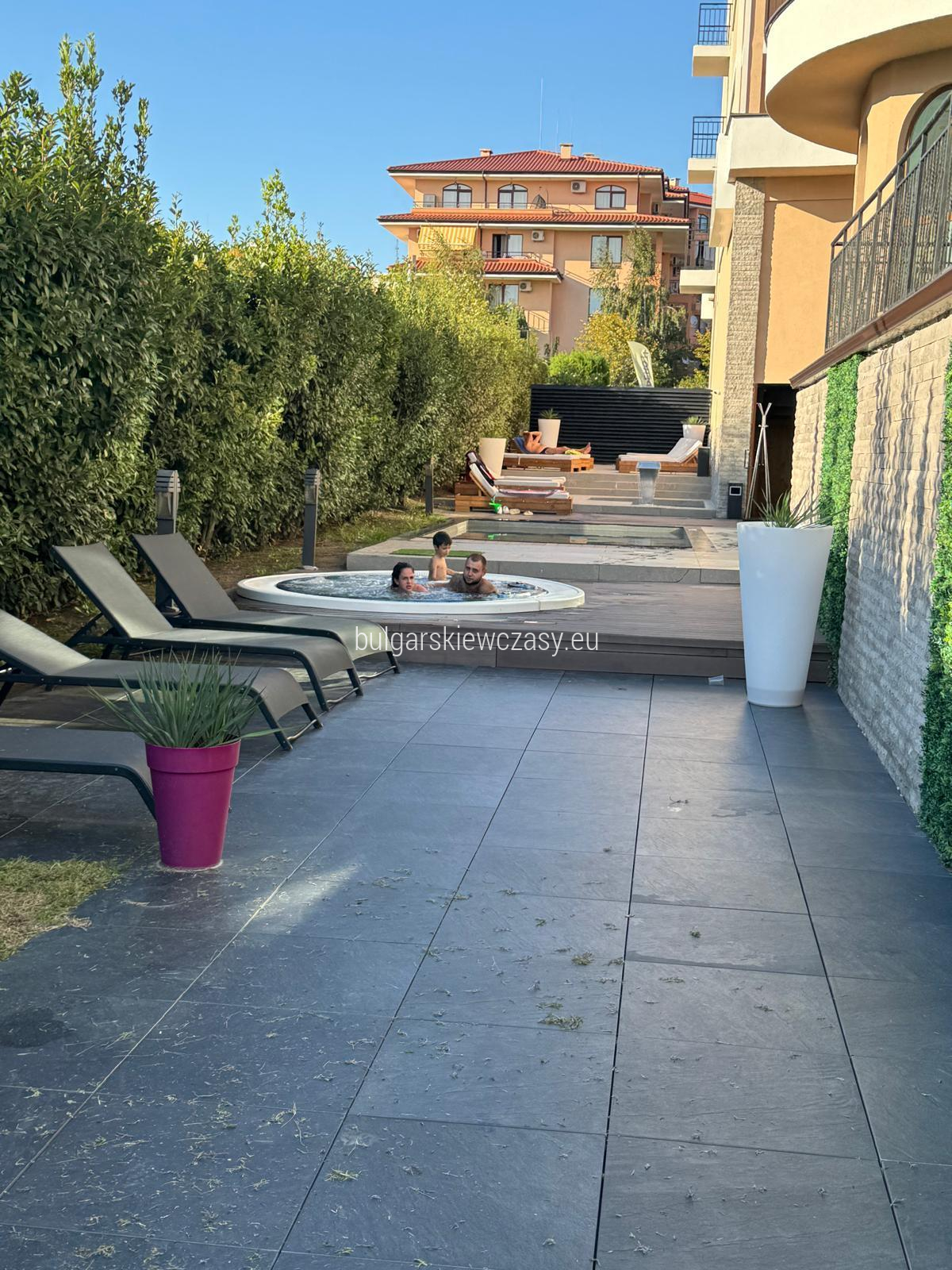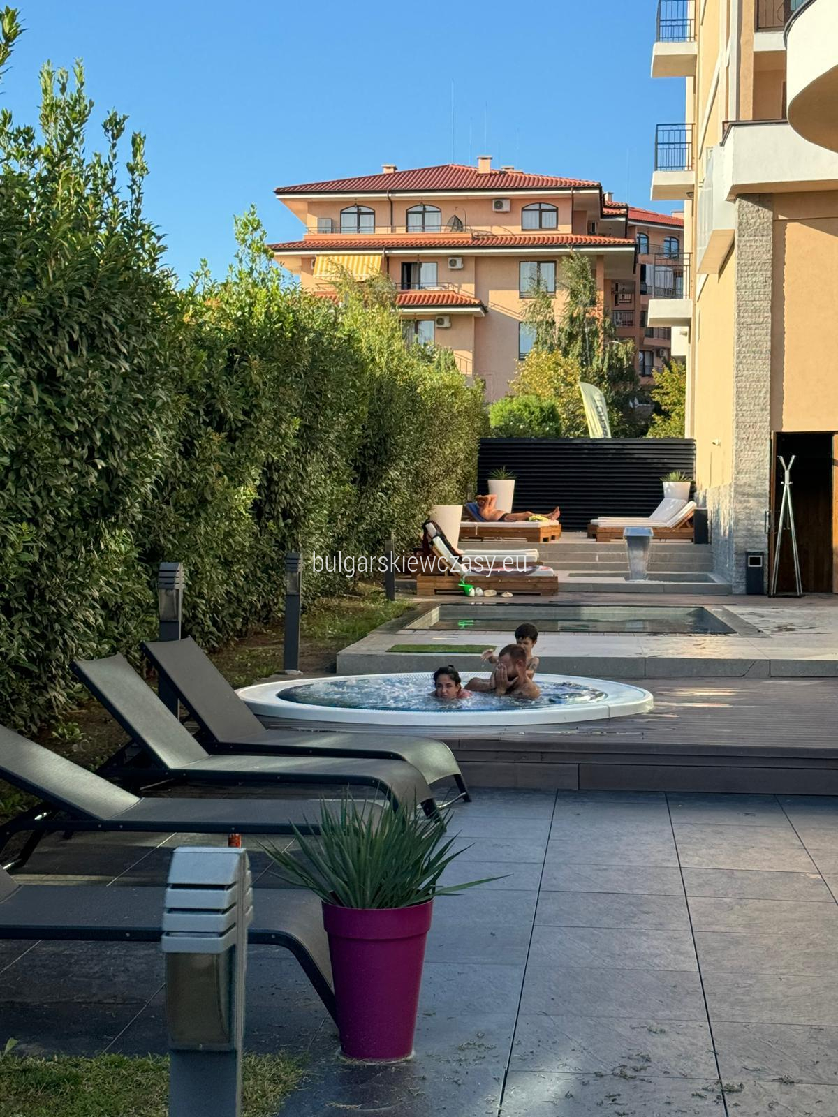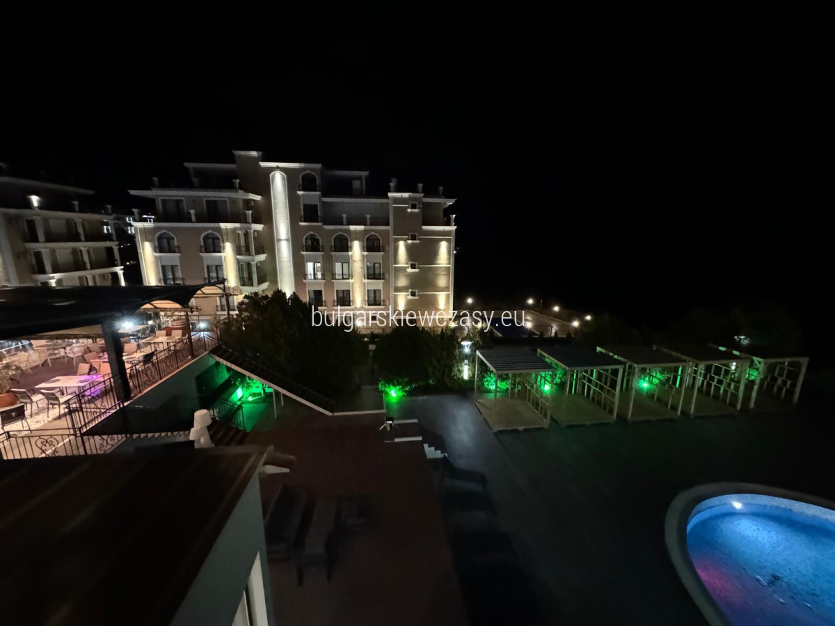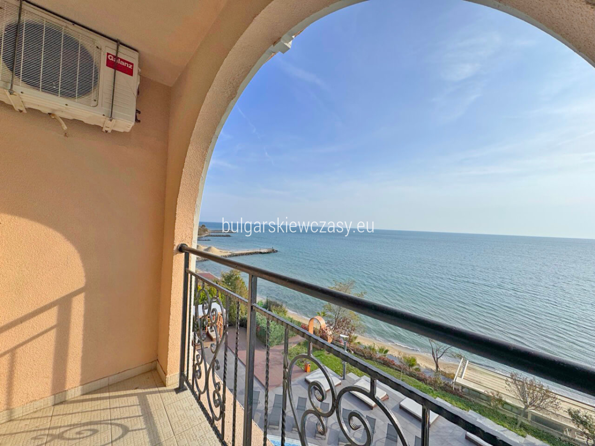 mały korytarz, w pełni wyposażona kuchnia, część sypialna, łazienka z prysznicem i toaletą, taras, z którego roztacza się wspaniała panorama morza. Sprzedaż mieszkania w pełni umeblowanego i wyposażonego w sprzęt AGD. Ekspozycja - południowy wschód. Studio jest jasne, przestronne i w dobrym stanie. Kompleks zlokalizowany jest tuż nad morzem. Bogata infrastruktura hotelu zapewnia wspaniały wypoczynek i relaks. W jej skład wchodzi: bardzo duże i nowoczesne centrum fitness, centrum spa, gabinety masażu, kryty basen, odkryty basen, restauracja, plac zabaw dla dzieci, parking, recepcja, ochrona, monitoring, prywatna plaża, windęa, akt 16, oddzielne liczniki wody i energii elektrycznej całoroczne funkcjonowanie. Niezwykle opłacalna inwestycja, zarówno na całoroczne życie, jak i na wynajem. Firma zarządzająca oferuje pomoc w wynajmie. Odległości do morza - 50 m do lotniska - 30 km do przystani - 900 m
